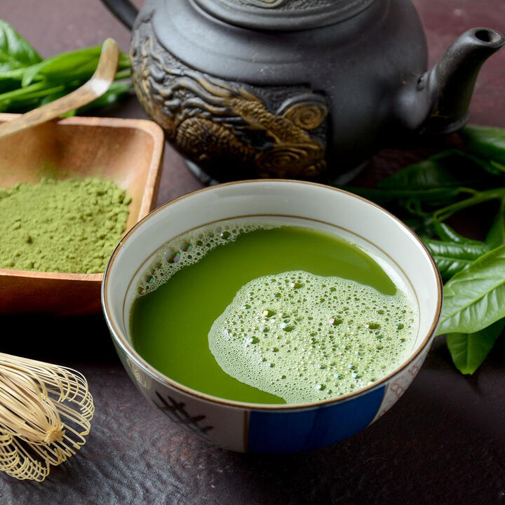 A slightly bitter hot served green tea with matcha. It's surprisingly popular with the resident sylphs.